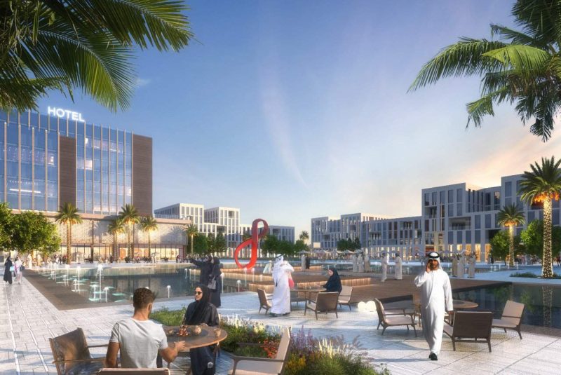 Maryam Island park that contains walkways and outdoor activity spaces. Apartment design